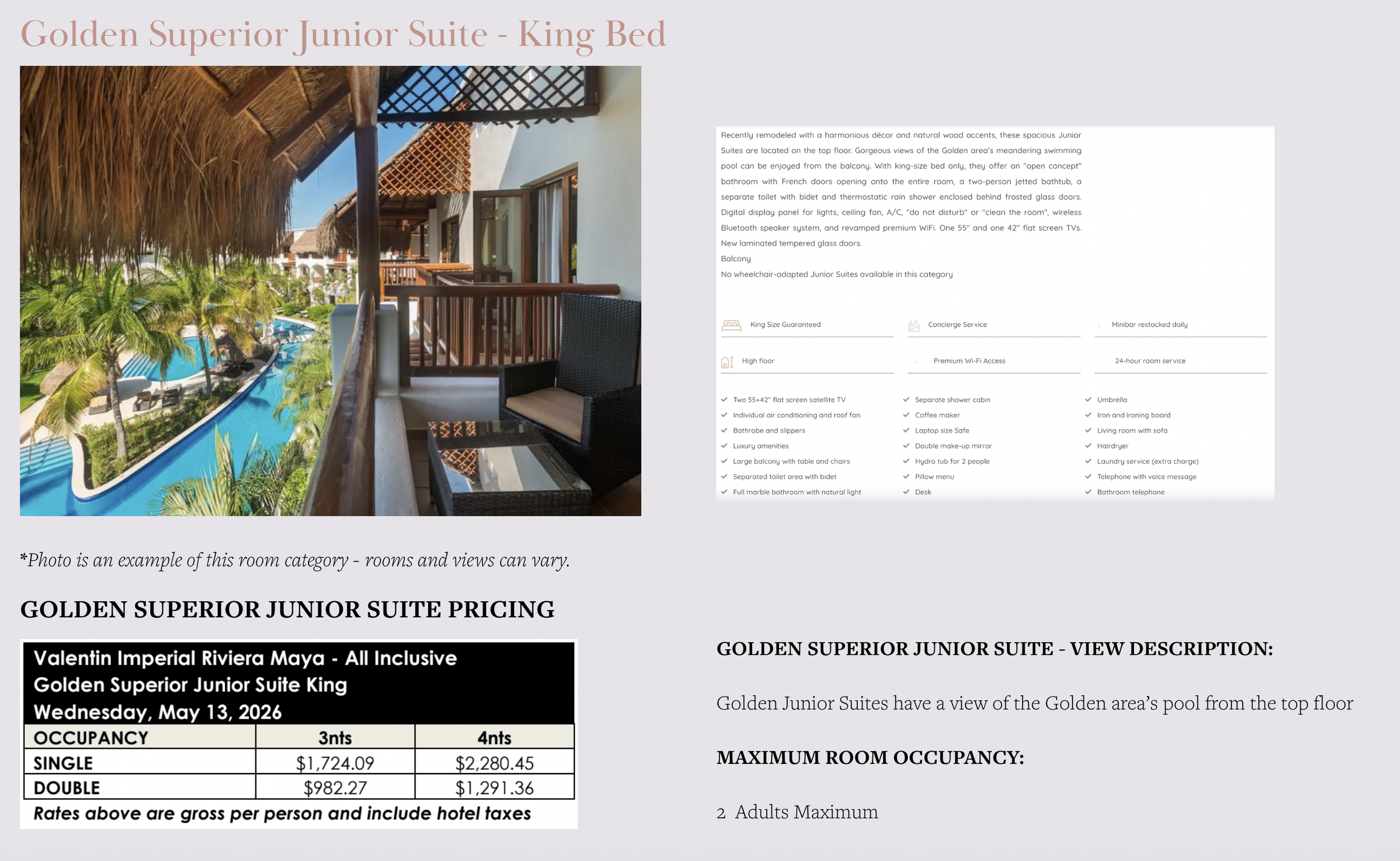 occupancy, and are All Inclusive.